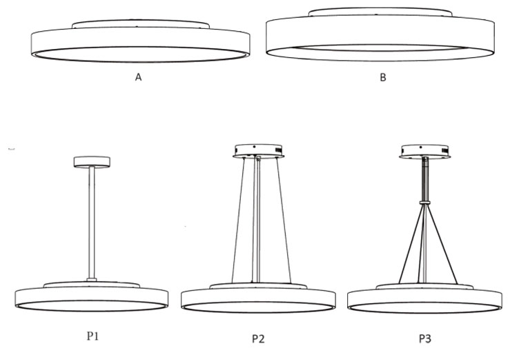 • Installation: Recessed/Surface/Pendant (With pendant rod suspension, with steel wire suspension, with wire harness suspension)