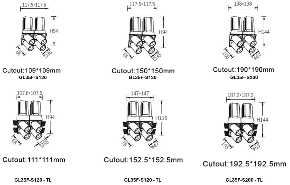 | GL35E-S230 | 3*12W | 231.5*84.5*116 |